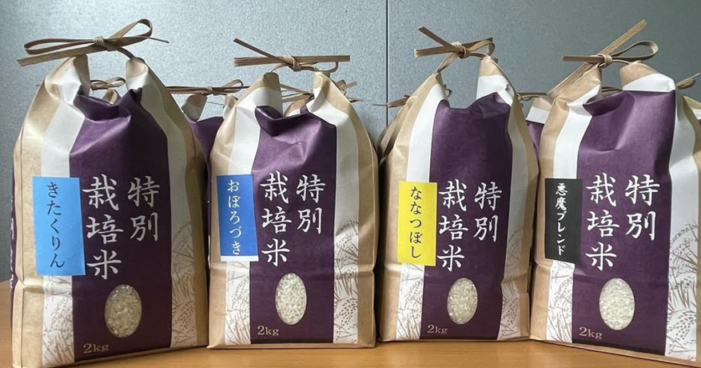 品種はななつぼしとおぼろづき。来年からはこの2品種に絞り込む予定だという。加えて、2つの品種を掛け合わせたオリジナルブレンド「悪魔ブレンド」も手がける。おぼろづきの粘りと、ななつぼしのあっさりした食感。その両方を活かしたブレンドは、地元の飲食店でも使われている。